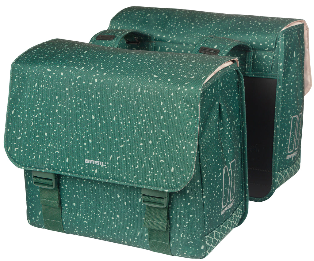 De Basil Flair is de ideale fietstas voor al je dagelijkse ritten en avonturen. Of je nu naar je werk fietst of een dagje weg gaat, deze stijlvolle dubbele fietstas biedt volop ruimte en gemak. Duurzaam & Waterafstotend Gemaakt van sterk, gerecycled polyester met een waterafstotende afwerking, beschermt de Basil Flair je spullen tegen een onverwachte regenbui. De stevige binnenvoering en het aansnoerkoord houden je bagage netjes en veilig op zijn plaats. Stijlvol & Praktisch Met een ruime inhoud van 35 liter heb je voldoende plek voor boodschappen, werkspullen of extra kleding. De tas is uitgevoerd in een tijdloze groene kleur met een speelse jaren 70-print, waardoor hij niet alleen functioneel, maar ook een echte blikvanger is. Veilig & Veelzijdig Dankzij de reflectie op alle zijden ben je beter zichtbaar in het verkeer, wat bijdraagt aan je veiligheid. Bovendien is de Basil Flair eenvoudig te bevestigen met het Universal Bridge system, geschikt voor de meeste bagagedragers, inclusief e-bikes. Wil je extra gebruiksgemak? De tas is compatibel met MIK en Racktime platen (apart verkrijgbaar), zodat je hem in één klik op je fiets plaatst. Kenmerken: 35 liter inhoud - ideaal voor boodschappen of dagelijkse benodigdheden. Gerecycled polyester - stevig, waterafstotend en milieuvriendelijk. Veilige opbergruimte - dankzij de stevige binnenvoering en het aansnoerkoord. Betere zichtbaarheid - reflecterende details op alle zijden. Universele bevestiging - geschikt voor diverse bagagedragers en e-bikes. Compatibel met MIK en Racktime - eenvoudig te monteren (platen apart verkrijgbaar). Ga stijlvol en praktisch op pad met de Basil Flair dubbele fietstas!
