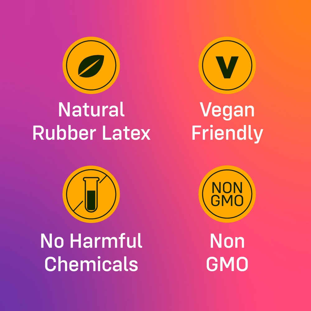Elk gehydrateerd condoom heeft een voorgevormde vorm met reservoir voor een comfortabele, veilige pasvorm. Elk condoom is gemaakt van ultrazachte Sensatex natuurrubberlatex voor een natuurlijke sensatie van genot. Veganistisch en GMO-vrij.