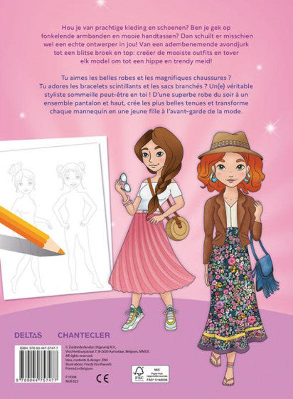 Houd je van prachtige kleding en schoenen? Ben je gek op fonkelende armbanden en mooie handtassen? Dan schuilt er misschien wel een echte ontwerper in jou! Van een adembenemende avondjurk tot een blitse broek en top: creëer de mooiste outfits en tover elk model om tot een hippe en trendy meid in dit blok met uitscheurbare tekeningen.