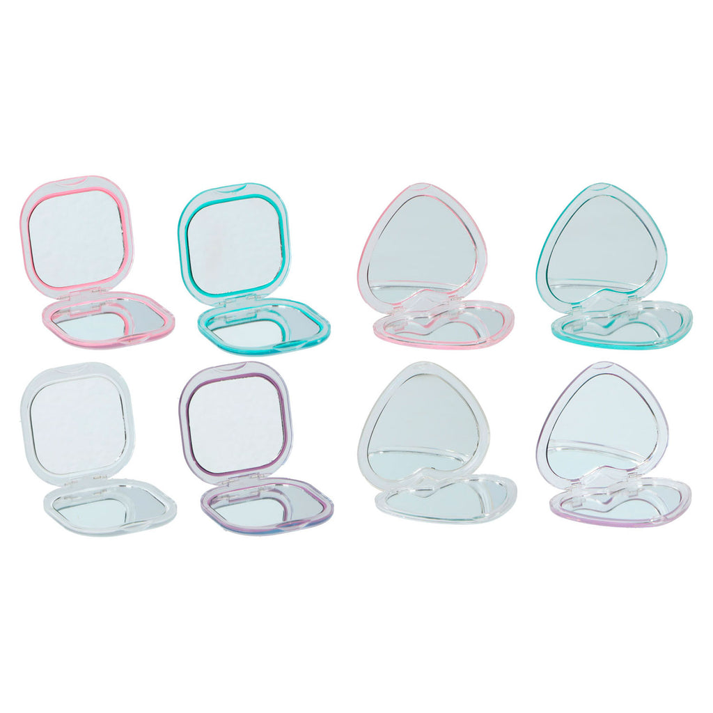Deze spiegel neem je gemakkelijk mee. Klap hem dicht om hem beschermd mee te nemen. Handig om je mee op te maken! De afmetingen van de spiegel zijn 8 bij 7,5 centimeter.