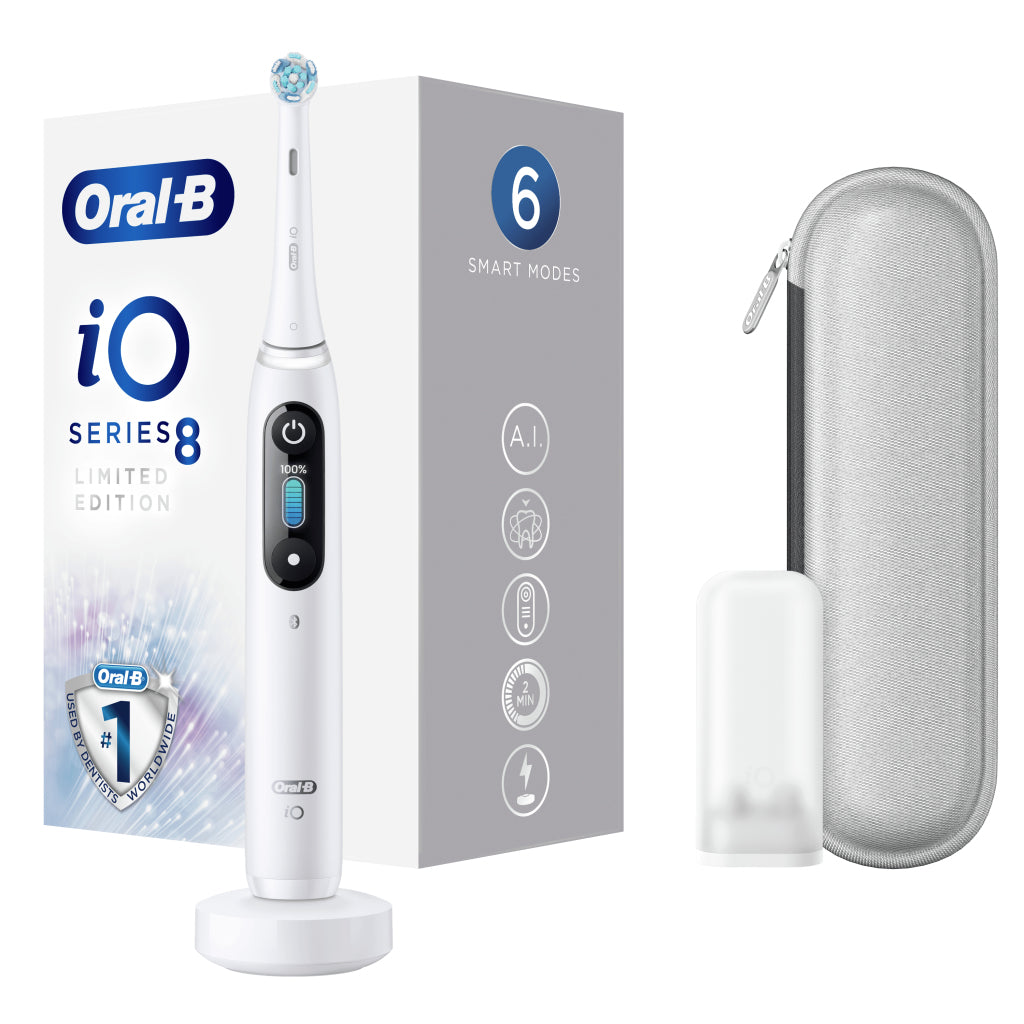 Oral-B heeft zijn uiterste best gedaan om een poetservaring te creëren die alle klassen overtreft. Meer dan alleen een vooruitgang in technologie om techniek van wereldklasse te integreren - voor de meest grondige, zachte en stille reiniging van uw leven. Meer dan design om een echt toestel van verlangen te creëren ? met een strakke look voor de meest gewilde technologie. Als u van een manuele naar een elektrische tandenborstel overschakelt, poetst u uiteraard beter. Maar als u van een elektrische tandenborstel naar een iO overschakelt, gaat u van een gewone naar een werkelijk buitengewone ervaring die u op een andere manier ziet, hoort en voelt. 96% van de Nederlandse mondzorgprofessionals zou Oral-B iO adviseren aan hun patienten.