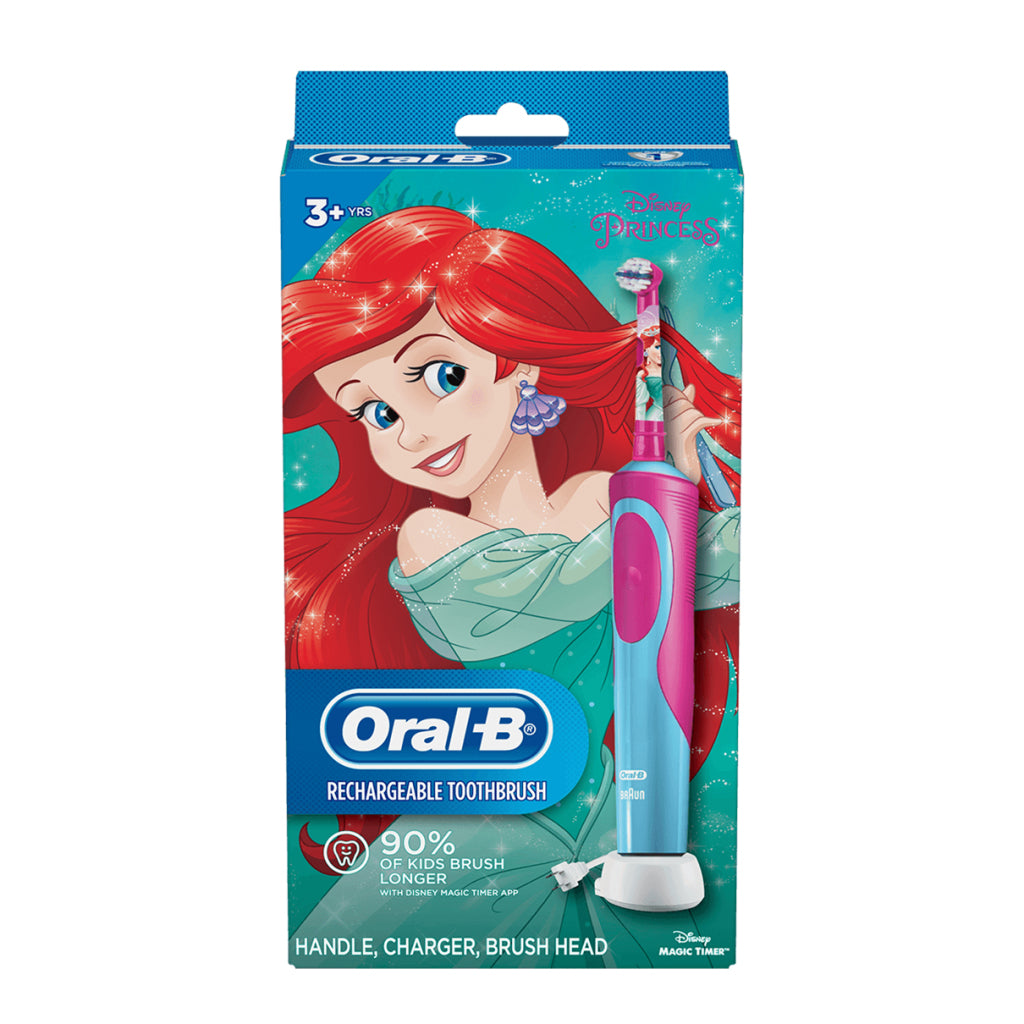 Breng vreugde in hun routine. Deze tandenborstel is compatibel met de interactieve Disney Magic Timer-app van Oral B om kinderen te helpen 2x langer te poetsen. Deze Oral B oplaadbare tandenborstel is de perfecte kindertandenborstel voor een gezonde, grondige reiniging. Terwijl hun glimlach blijft groeien en ontwikkelen, is er geen betere tijd om te beginnen met gezonde gewoonten voor mondverzorging. Deze elektrische tandenborstel heeft een waterdicht handvat en een gevoelige, schone opzetborstel met een kleine ronde kop en extra zachte haren die zacht zijn voor het tandvlees.