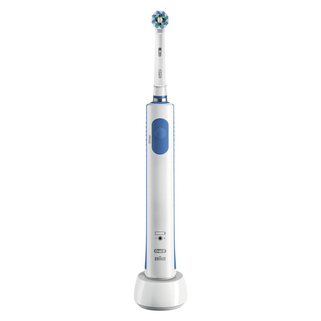 De Oral-B PRO 600 CrossAction elektrische tandenborstel biedt een superieure reiniging dan een gewone manuele tandenborstel. Het op professionele reinigingsinstrumenten geïnspireerde ontwerp van de CrossAction opzetborstel omvat elke tand met borstelharen die in een hoek van 16 graden zijn geplaatst en de 3 D-reinigingsactie trilt, roteert en en pulseert om zo tot 100% meer tandplak los te maken en te verwijderen dan een gewone manuele tandenborstel. De timer in het handvat helpt u om de door tandartsen aanbevolen 2 minuten te poetsen.