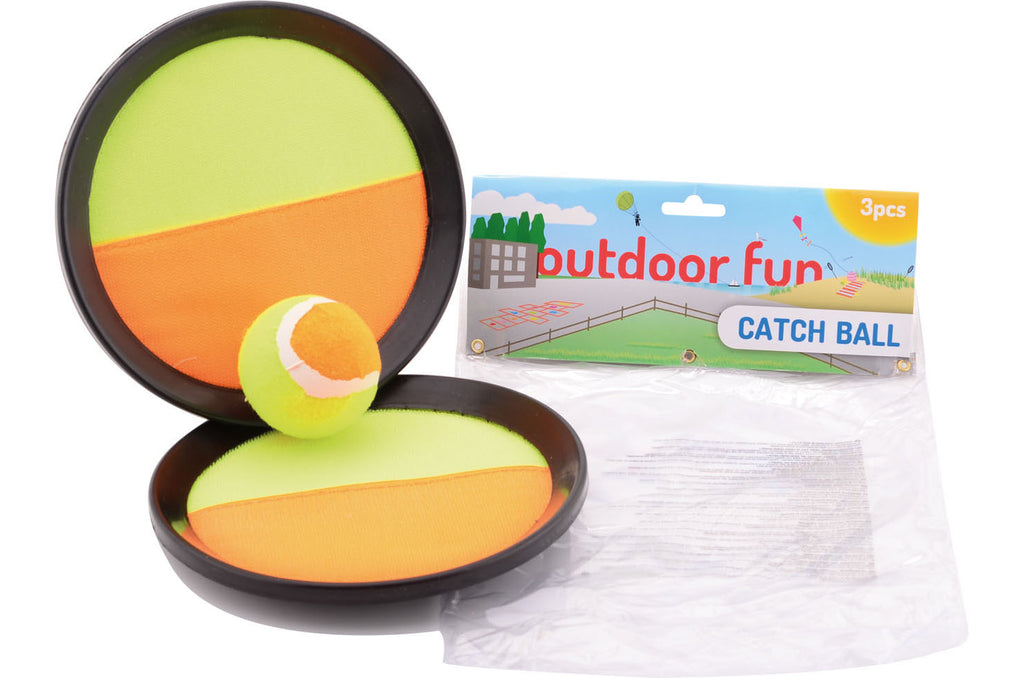 Probeer het tennisballetje te vangen met 1 van de kunststof batjes. Dankzij het klittenband in de batjes is de bal makkelijker te vangen en blijft hij plakken aan het batje. Leuk voor in de tuin of op het strand.