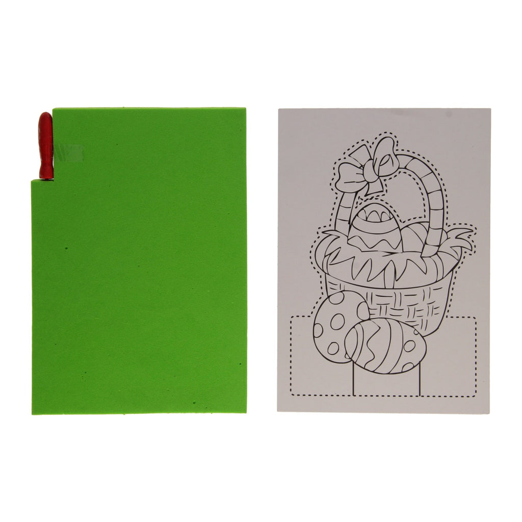 Prikblokset in Paasthema met prikpen, prikvilt en verschillende illustraties met priklijnen.