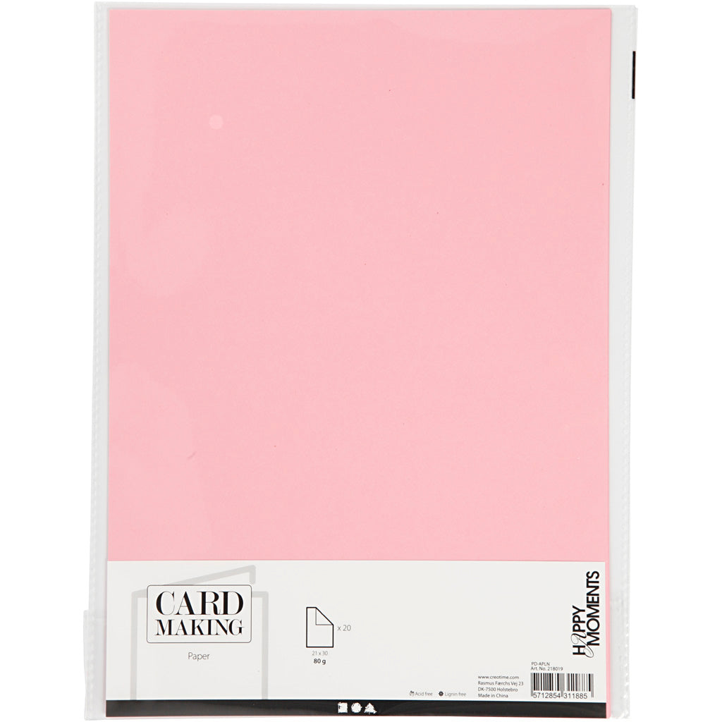 Pak met hoge kwaliteit lichtrood knutselpapier. Het 80 grams A4-papier is ideaal voor het maken van kaarten of andere stevige knutselwerken. In de verpakking zitten twintig vellen.