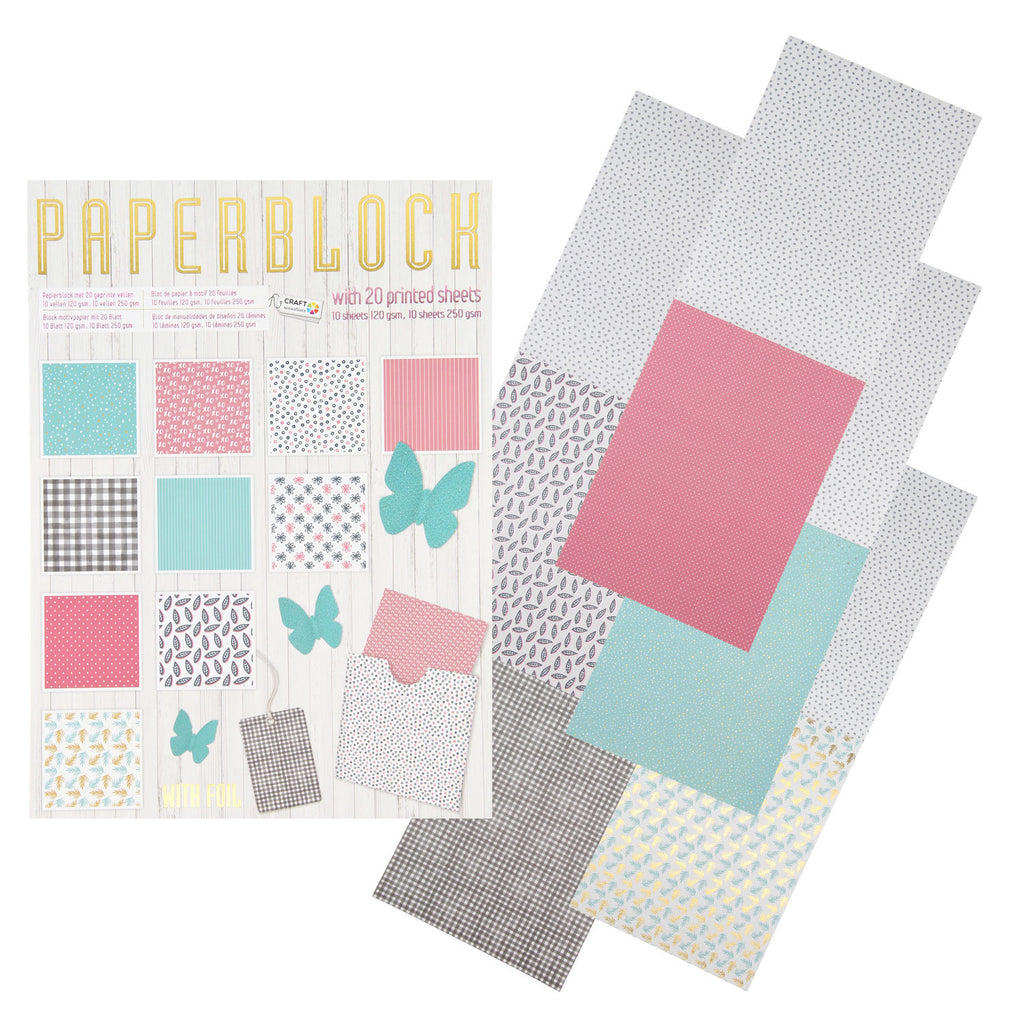 Papierblok met 20 A4 vellen met verschillende printjes.