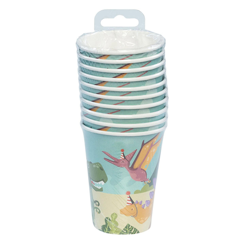 Set van 10 papieren bekertjes met thema Dino party (inhoud: 21 cl).