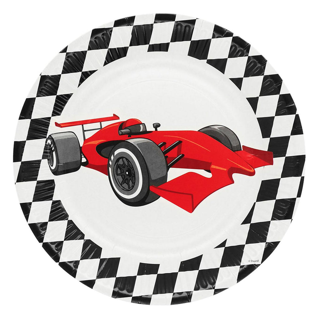 Set van 8 papieren bordjes met thema Racing (doorsnede 23 cm).