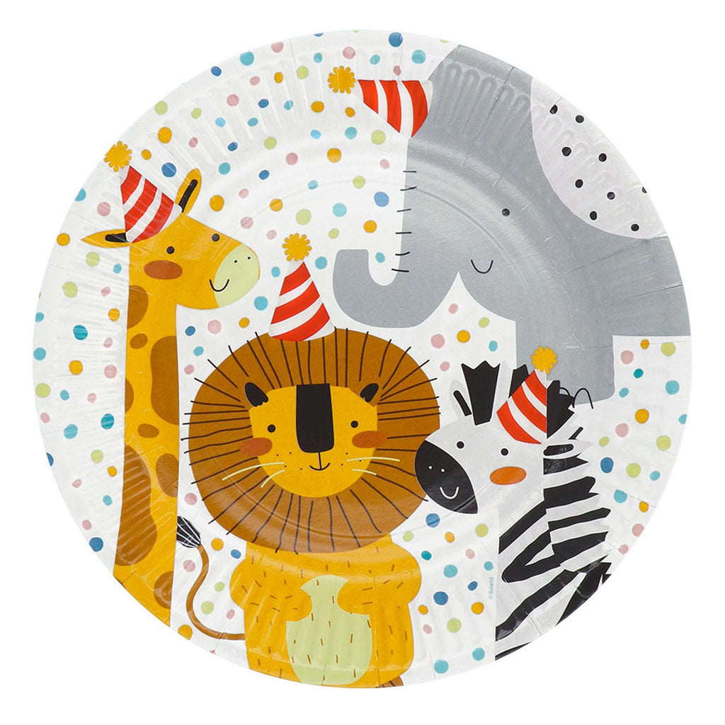 Set met 8 papieren bordjes, thema Safari (23 cm).
