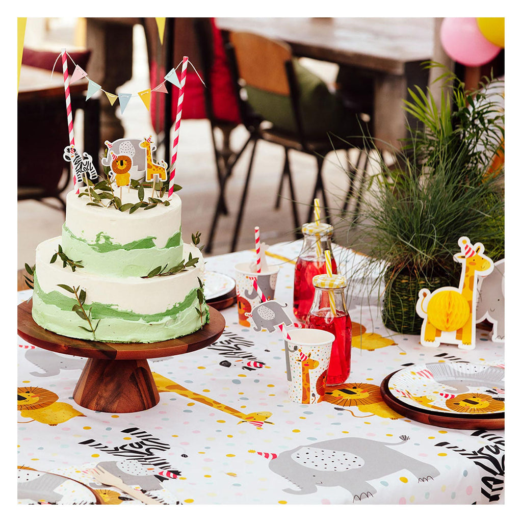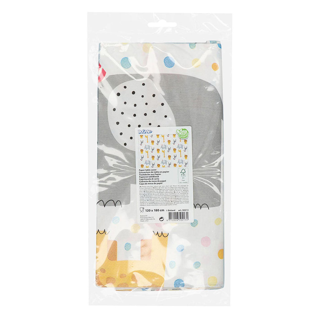 Papieren tafelkleed in thema Safari. Afmetingen: 120 x 180 centimeter.
