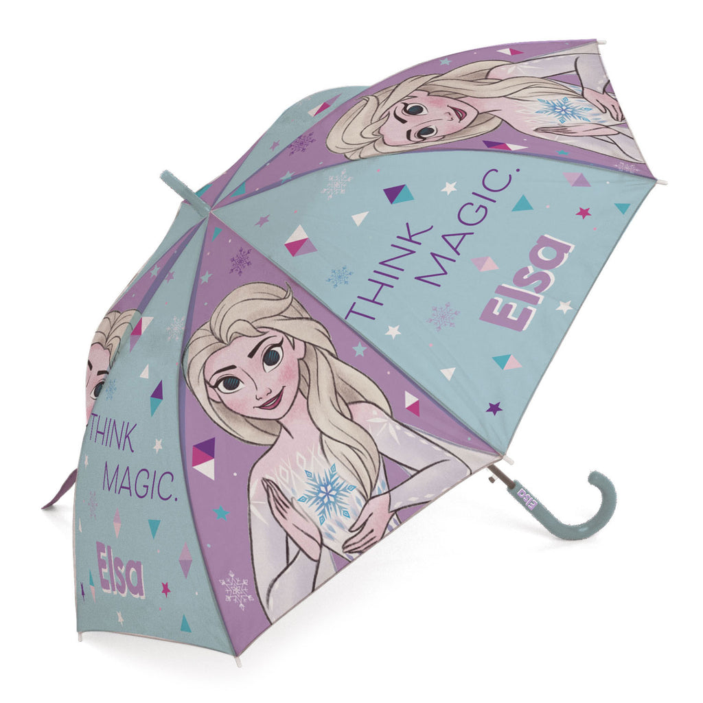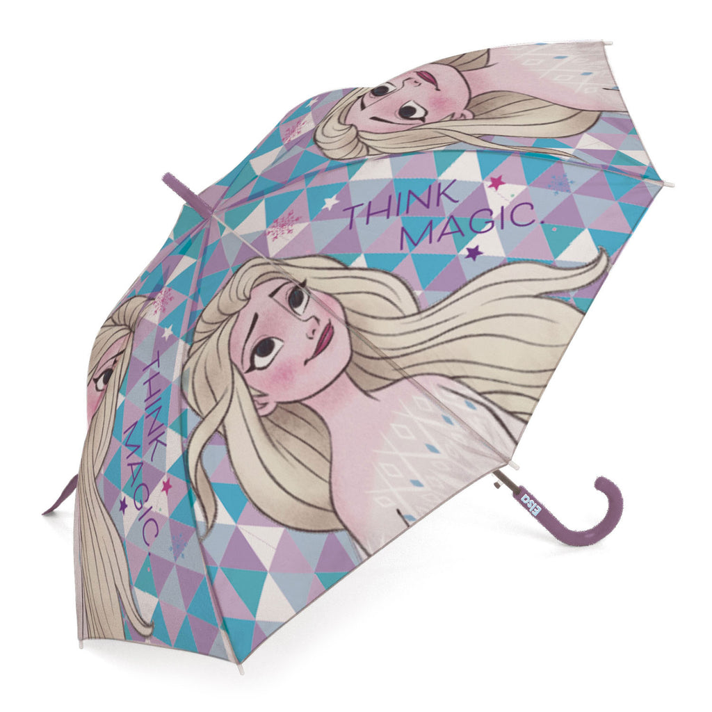 Paraplu met afbeelding van Elsa van Frozen met U-vormig handvat. De paraplu is 69 centimeter lang en 86 centimeter in doorsnede.