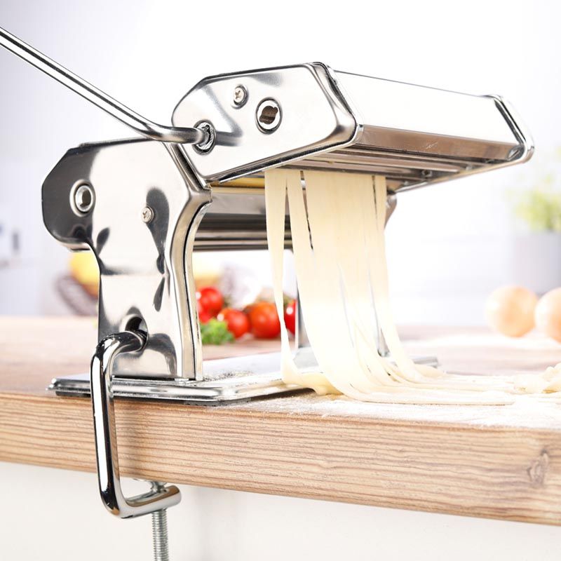 Het ideale apparaat voor je zelfgemaakte pasta, maak je eigen spaghetti, lasagna en tagliatte. De metalen pastamachine is van zware kwaliteit en heeft een tafelgreep om hem te bevestigen aan het aanrecht of tafel.