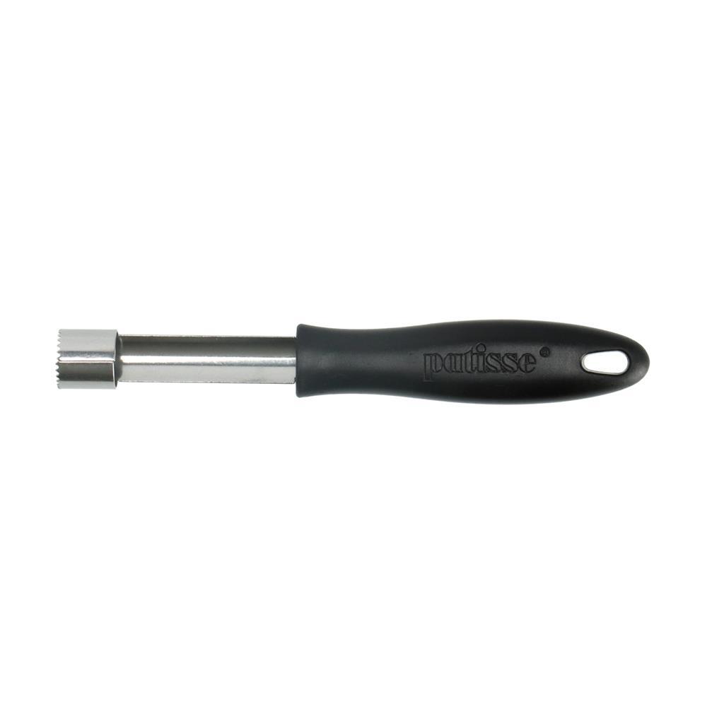 Patisse rvs appelboor met zwart kunststof handvat met ophangoogje.20 cm groot, perfect voor het ontkernen van appels, bijvoorbeeld voor een appeltaart.