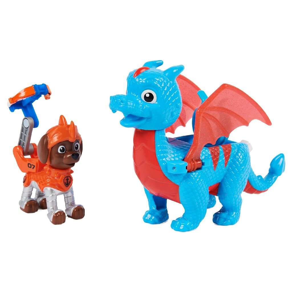Ga mee met je favoriete pups en hun nieuwe drakenvriendjes, en beleef spannende reddingsmissies met de Rescue Knights Pup en Draak-sets. Deze set actiefiguren bevat Zuma en zijn trouwe drakenvriendje Ruby. De geliefde pup van Paw Patrol draagt zijn Rescue Knights-harnas en is klaar om in actie te komen. Druk op de badgeknop van Zuma om het gereedschap in zijn rugzak te transformeren en open te klappen. Klem Zuma vervolgens op de rug van Ruby en druk op de knop op de staart om de glinsterende, doorzichtige vleugels te laten bewegen. Deze geweldige set brengt al het middeleeuwse plezier van de populaire tv-serie tot leven. Verzamel alle Rescue Knights Pup en Draak-sets en gebruik je fantasie om keer op keer je eigen reddingsmissies te verzinnen. Geschikt voor kinderen vanaf 3 jaar.