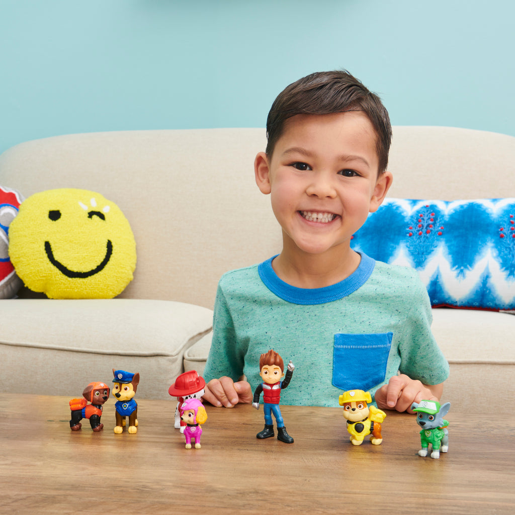 6 PAW Patrol-figuren: deze cadeauset mag je als PAW Patrol-fan niet missen. Met alle 6 de pups inbegrepen, is de set de perfecte manier om de actie en spanning van PAW Patrol de film in huis te halen. Alle speelgoedfiguren dragen hun gloednieuwe PAW Patrol de film-uniformen en hebben realistische vachtdetails, waardoor ze er net zo uitzien als in de film. Gebruik je fantasie en herbeleef je favoriete momenten uit PAW Patrol de film of verzin gloednieuwe avonturen met deze set PAW Patrol-speelgoed voor jongens en meisjes! Wordt geleverd in windowbox. Geschikt voor kinderen vanaf 3 jaar.