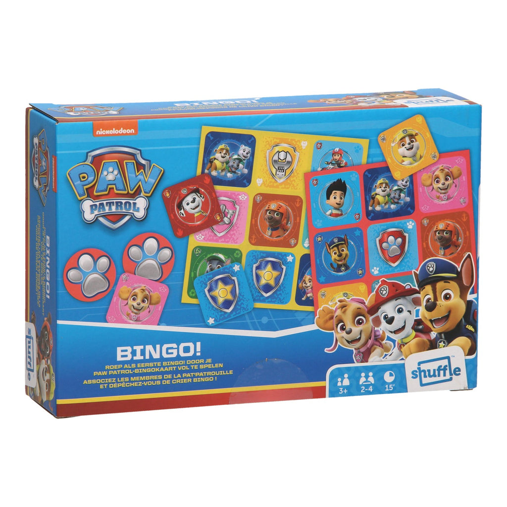 Speel je Bingokaart met de Paw Patrol karakters vol en wees de eerste die bingo roept! Inhoud: 4 bingokaarten, 20 karakterkaarten, 36 bijenschijven en de spelregels. Geschikt voor kinderen vanaf 3 jaar.