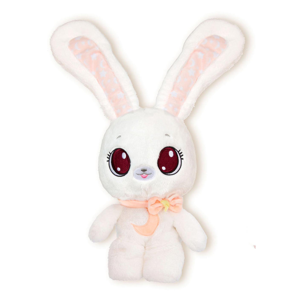 Interactief knuffelkonijn van Peekapets. De knuffel heeft een dagfunctie met 3 vrolijke liedjes en kan verstoppertje spelen met zijn oren. In de nachtfunctie heeft hij een zacht slaapliedje en nachtlampje. Geschikt vanaf de geboorte.