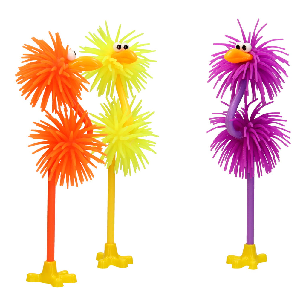 Schrijf de vrolijkste verhalen met deze grappige pen in de vorm van een vogel. De pen heeft een gezichtje van stevig kunststof en een wiebelig hoofdje en lijfje. Tijdens het schrijven schudt het rubberen vachtje heen en weer. Op de voet blijft de vogel pen statig op je bureau staan.