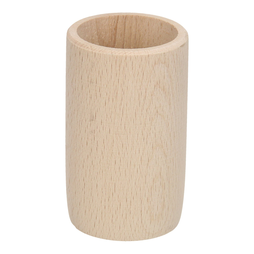 Rond pennenbakje van beukenhout. De doorsnede van de opening is 4,7 centimeter. Versier het pennenbakje naar eigen wens.