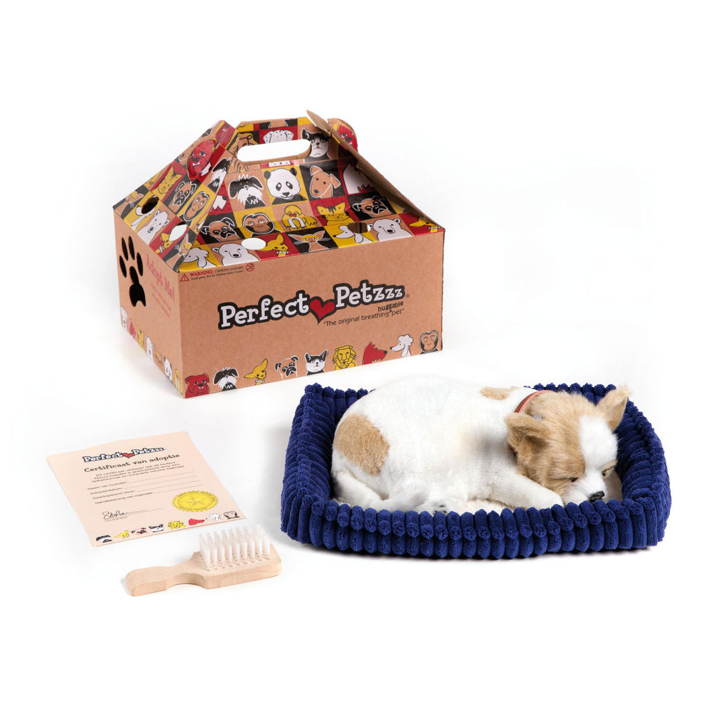 Perfect Petzzz zijn levensechte knuffels en ademen écht! Ze hebben aandacht, verzorging en liefde nodig. Daarom worden ze geleverd met een borsteltje, mandje, halsbandje met penning en een transportboxje. En met een adoptiecertificaat uiteraard.