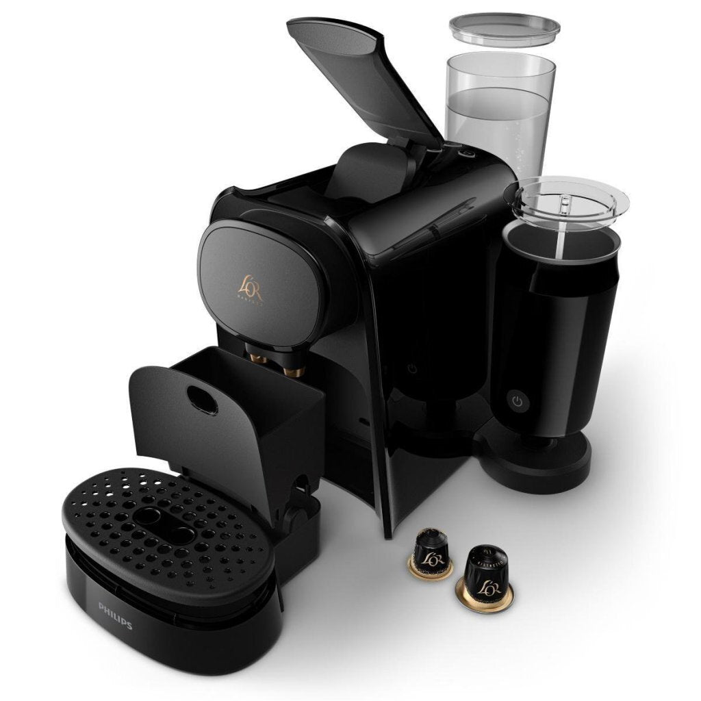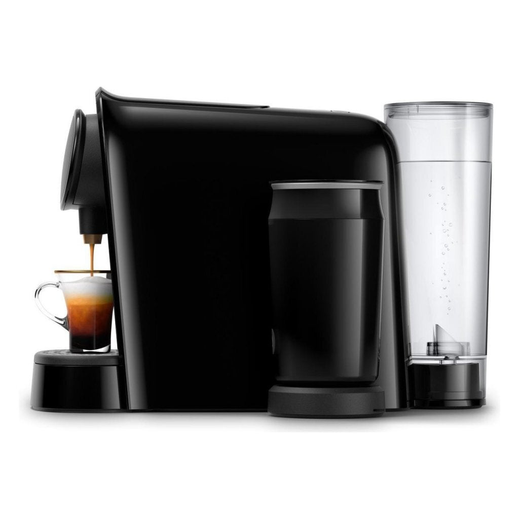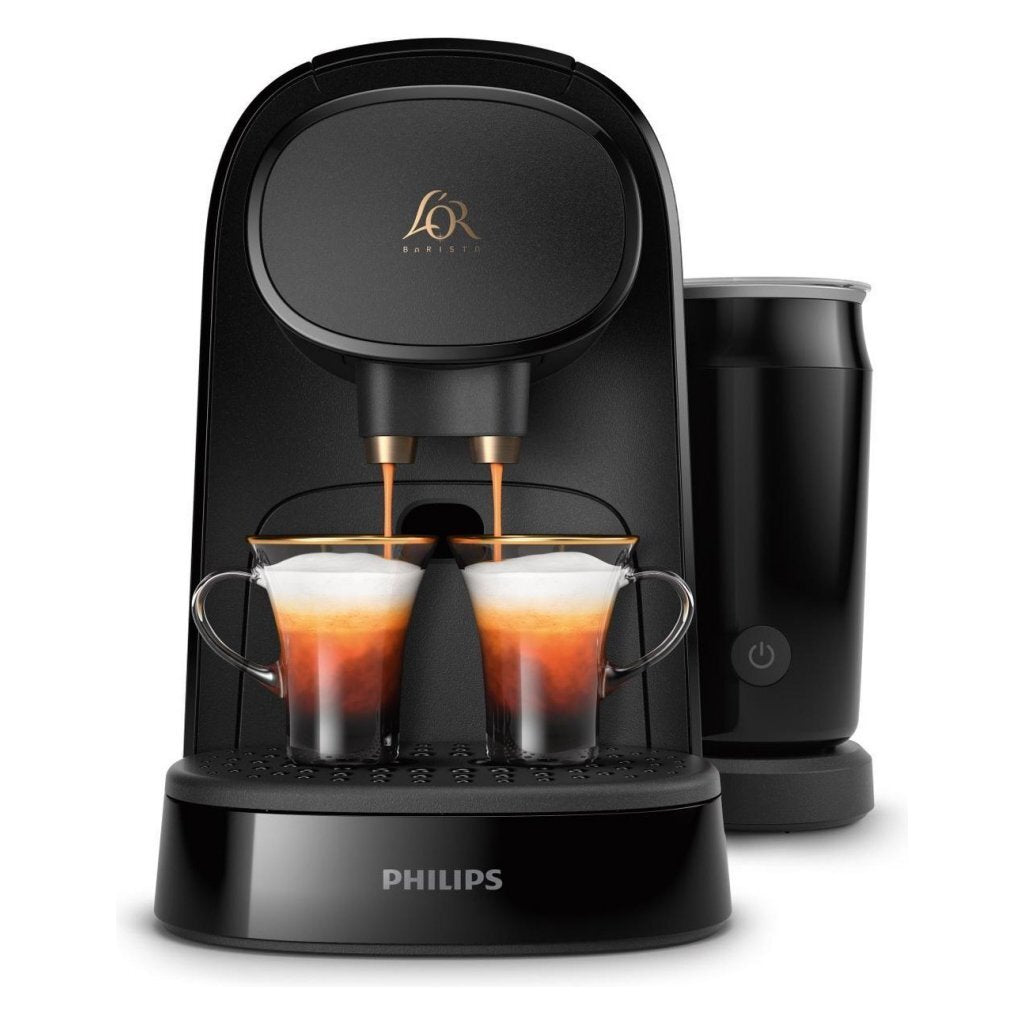 De Philips L'OR BARISTA LM8014/60 koffiecupmachine met melkopschuimer, voor het gebruik van de L'OR Barista XXL capsule. Het apparaat biedt een volledig koffiemenu aan met ristretto, espresso en lungo. Je kunt met het L'OR barista-systeem twee kopjes espresso of één kop dubbele espresso zetten, dankzij de L'OR Barista XXL capsules. De koffiemachine zet koffie met een hoge druk van tot wel 19 bar voor de kwaliteit van echte espresso. Het koffiesysteem beschikt over Smart Dual Capsule Recognition-technologie, die automatisch de capsule grootte herkent en er automatisch naar schakelt. Je hoeft alleen maar op de knop van de gewenste koffie te drukken. Met melkopschuimer voor het bereiden van warme en koude koffierecepten. Met dit koffiezetapparaat kun je ristretto, espresso, lungo, cappucino, latte, espresso en macchiato maken. De koffiehoeveelheid is automatisch ingesteld door het apparaat, maar naar wens aan te passen. Enkel aluminium capsules zijn te gebruiken in dit apparaat, een plastic koffiecup kan de koffiecupmachine beschadigen. Dit apparaat is geschikt voor gebruik van de volgende capsules: L?OR Espresso, L'OR Barista, Douwe Egberts, Jacqmotte, illy®, Nespresso ® (met uitzondering van Nespresso ® Vertuo), Starbucks, Belmio, Marcilla, Grand' Mere, Saimazza, Friele, Kenco, Pilao, Moccona, Café Royal, Bellarom (Lidl), Auchan, Graindor (Colruyt), Carrefour BIO, Carte Noire, Cora, Lavazza, Moreno (Aldi) en Planteur.