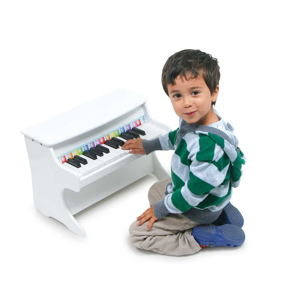 Deze witte piano is een superlatief muzikaal speelgoed! Pianisten in de dop kunnen hun liefde voor muziek ontdekken en ook enkele liedjes "uit het hoofd" leren spelen dankzij de noten die in gekleurde velden worden weergegeven.