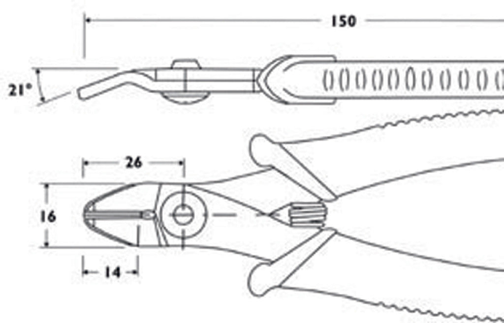 Afgekante zijkniptang. Door een speciale behandeling is deze tang bijzonder geschikt voor het verwerken van ijzerhoudende materialen.