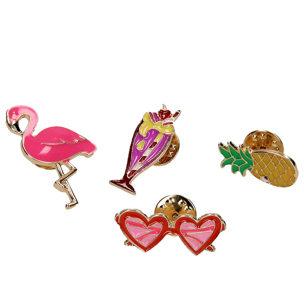 Set van 4 pins om bijvoorbeeld je kleding, schooltas, etui of pet op te pimpen. De pins zijn gemakkelijk op te spelden. De speldjes zijn nikkelvrij.