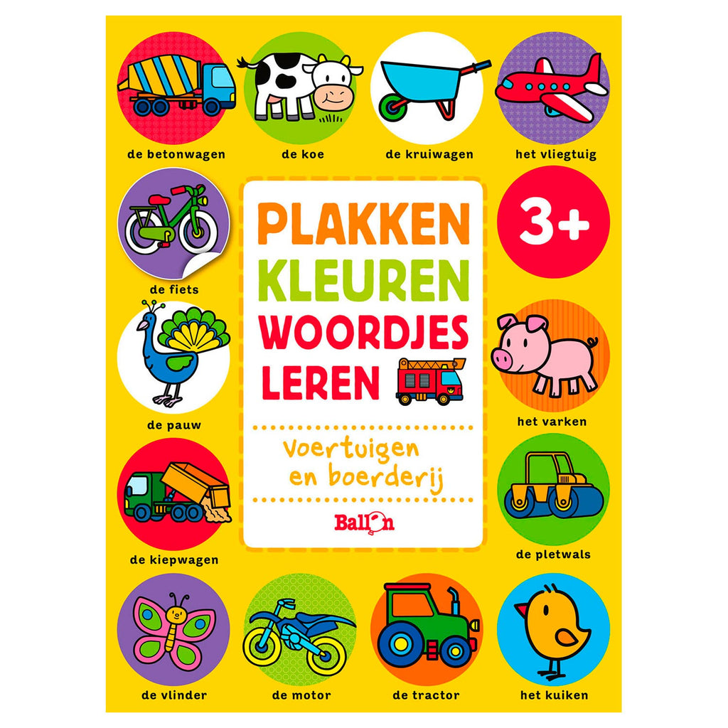 Dit boek Plakken, Kleuren, Woordjes Leren - Voertuigen en Boerderij staat bomvol stickers en kleurplaten die over de boerderij en voertuigen gaan. De stickers kun je onderaan de kleurplaat plakken op de juiste plek, zo leer je ook nieuwe woorden.