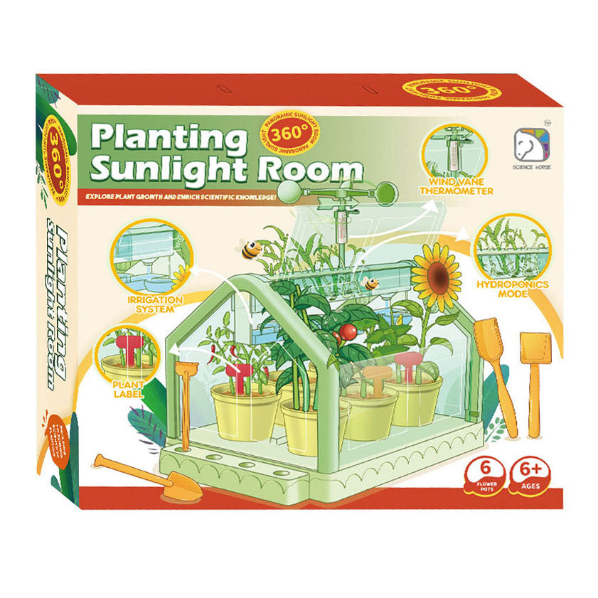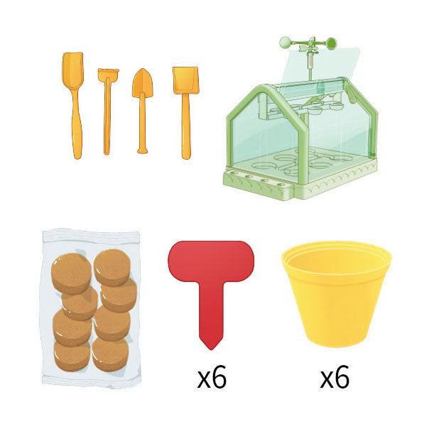 DIY Plantenkas met 360-graden lichtinval, irrigatiesysteem, thermometer en hydroponics-modus. De plantenkas wordt geleverd met 6 kunststof potjes met bijpassende plantenlabels, een zakje potgrondtabletten en 4 stukken tuingereedschap. Geschikt vanaf 6 jaar.