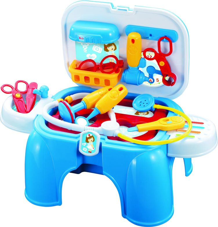 Dokter speelset- en stoel. Afmetingen: 47 x 26 x 37 cm.