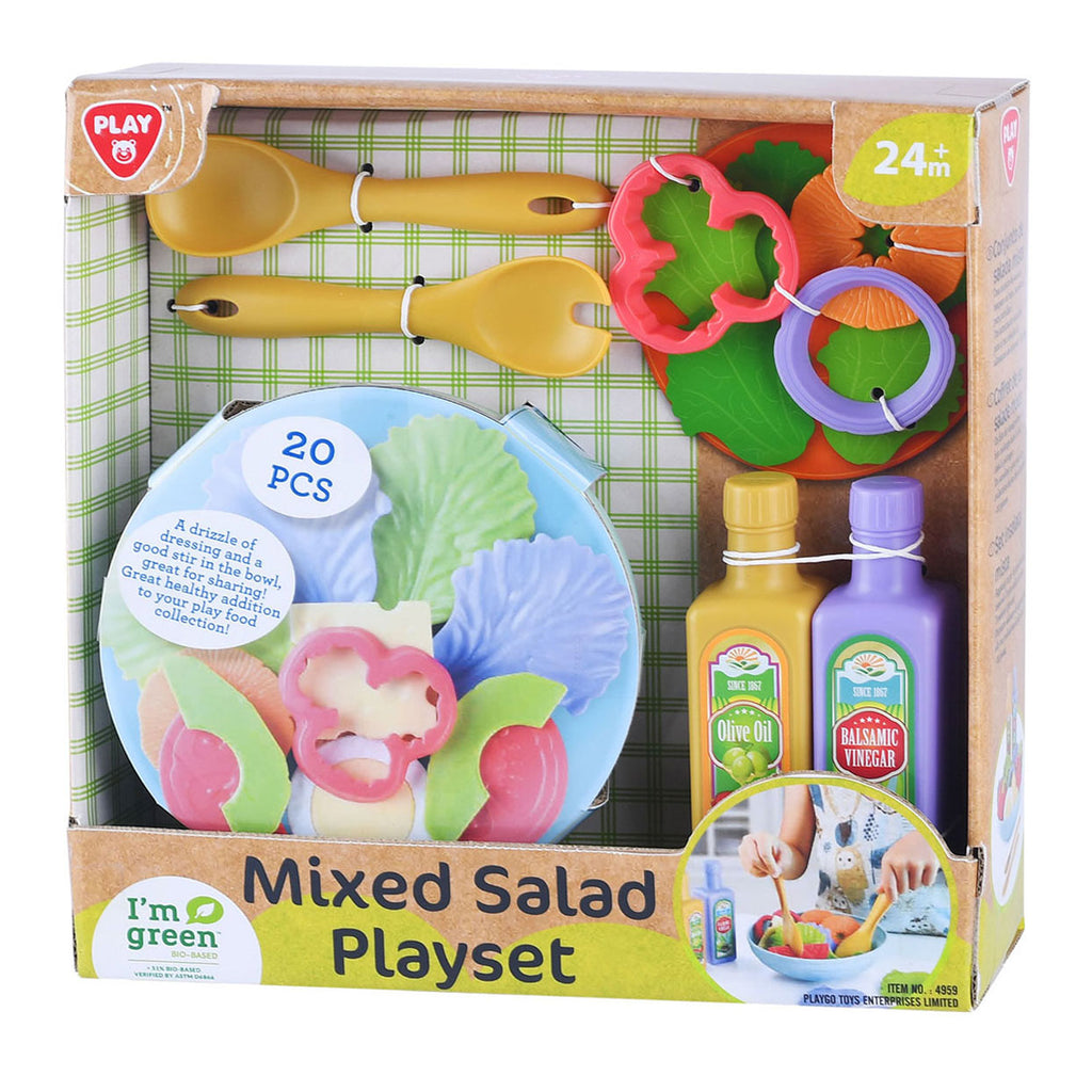 Salade speelset bestaande uit 20 delen gemaakt van biologisch plastic. Geschikt voor kinderen vanaf 24 maanden.