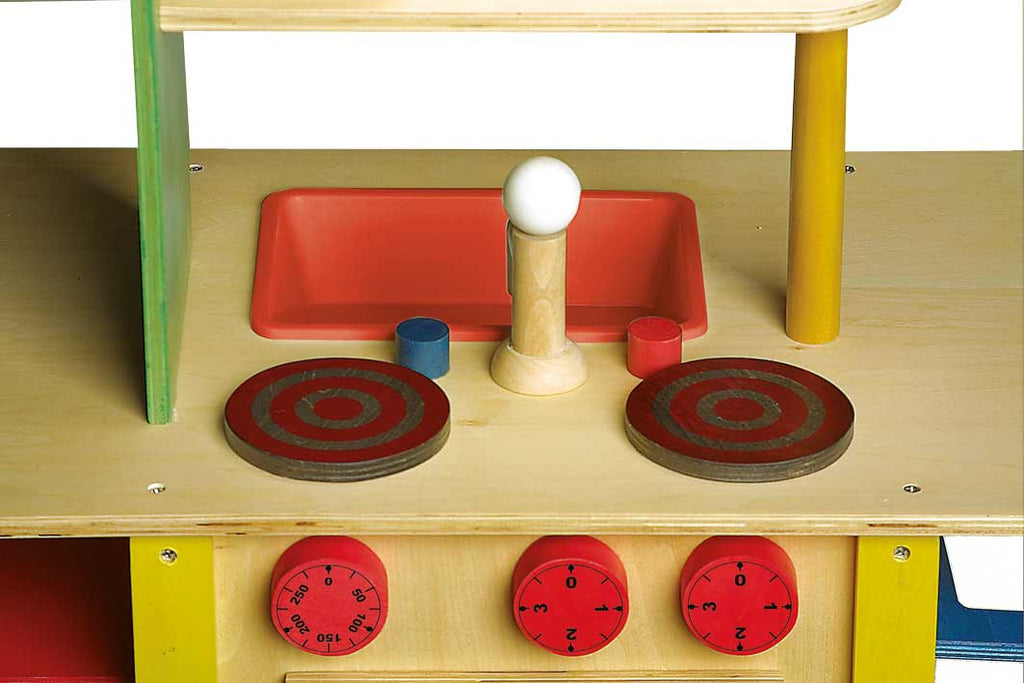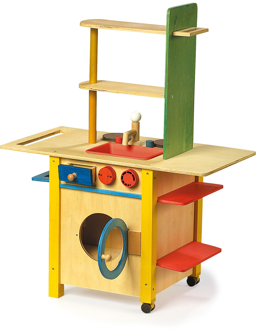 Heel leuk om op zoveel verschillende manieren te spelen. Met wasmachine, fornuis en gootsteen. Extra uitrusting voor keukengerei en theedoeken. Bedieningselementen met geluidseffect en kleppen met magneetsluitingen.