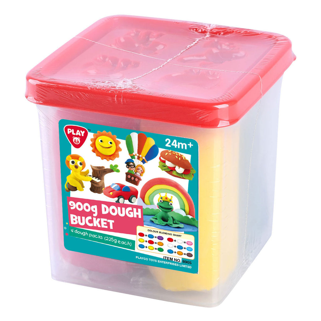 Kubus met 4 klompen klei van elk 225 gram. In totaal zijn er 4 kleuren (geel, groen, blauw en rood) en 900 gram klei, zodat je de mengsels kunt maken die jij wilt. Op de deksel van de pot zitten 4 kleine diervormpjes. Aanbevolen leeftijd vanaf 3 jaar.