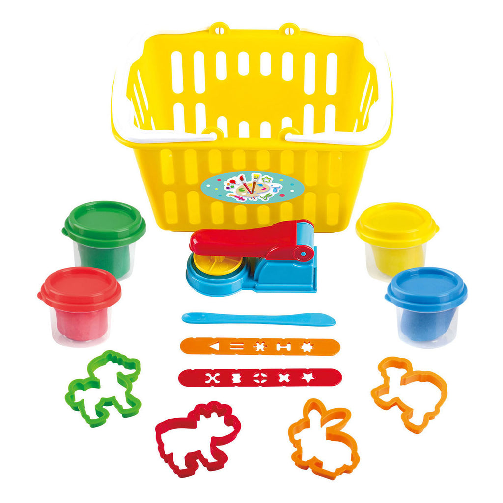 Ga lekker creatief aan de slag met deze boetseerklei set! Doordat er een mandje bij de set zit neem je alles gemakkelijk mee naar opa/oma of op vakantie. De set bestaande uit 13 onderdelen heeft 4 potjes klei, verschillende vormpjes en gereedschap. Geschikt voor kinderen vanaf 3 jaar.