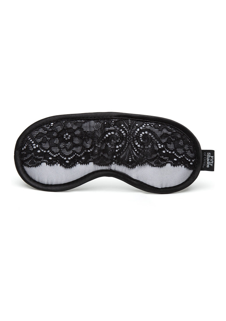 The elegant Play Nice Satin blindfold from Fifty Shades of Grey is made out of silver-coloured satin and decorated with delicate, black eyelash lace. It is opaque and slightly padded. It also has a wide, stretchy head strap which means that it is extremely comfortable to wear during play and sleep.