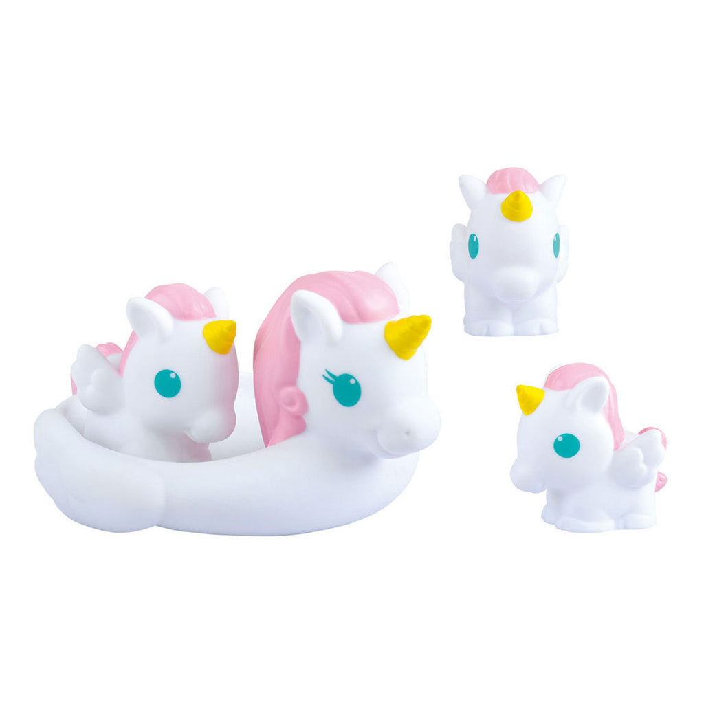Geniet van het 'magische' moment tijdens het baden en het kijken naar de eenhoorns die ronddobberen tijdens het badderen! 4-delige set, 1 grote eenhoorn en 3 kleine. De kleintjes kunnen op de rug van de grote zitten. Perfect voor badplezier! Geschikt voor kinderen vanaf 6 maanden.