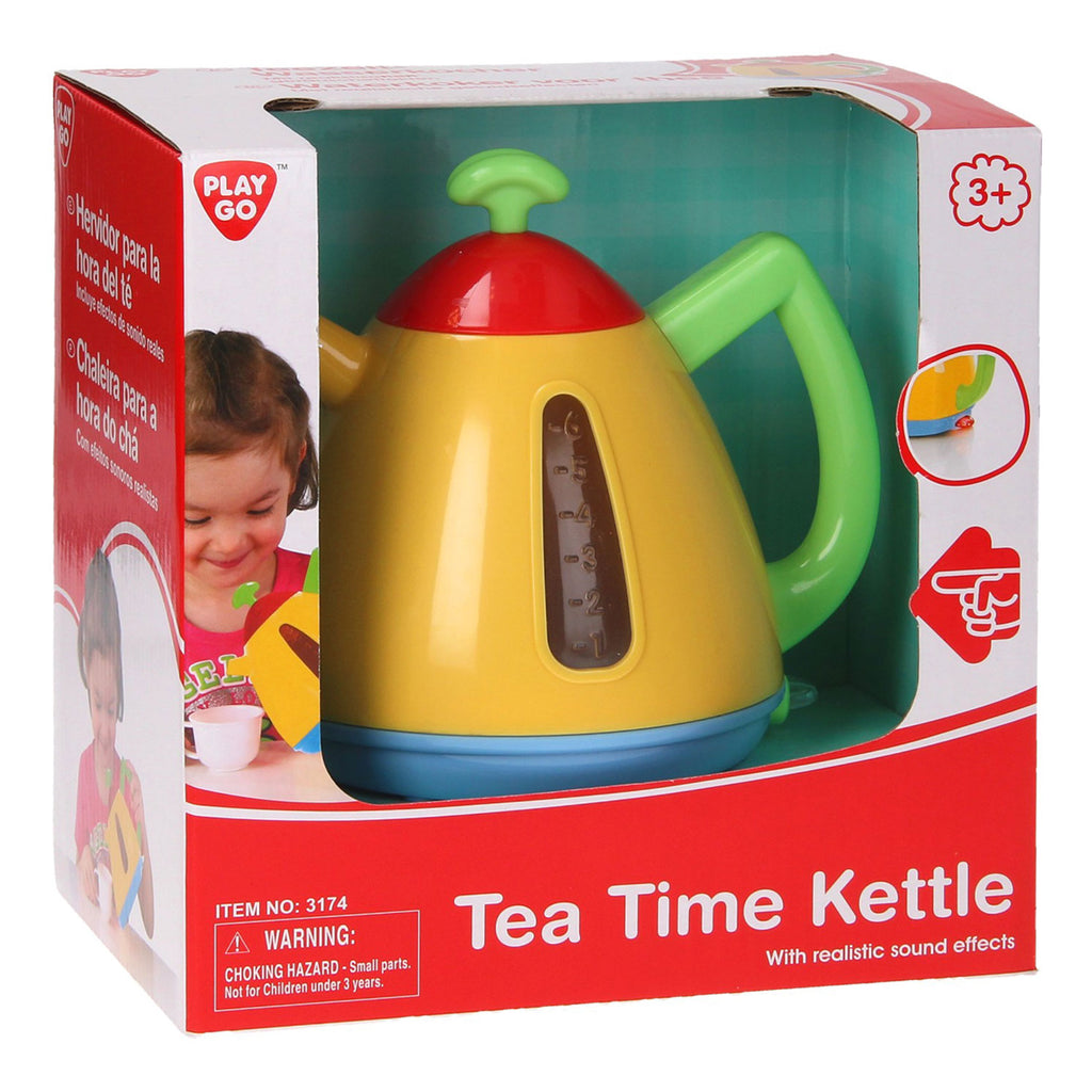 Zet een lekker kopje thee met deze theeketel van Play. Vul de gele ketel met denkbeeldig water, druk op de knop en wacht tot het water gekookt is. Tijdens het koken gaat het lampje aan en hoor je echte geluiden van een fluitketel. De ketel is gemaakt van stevig kunststof in vrolijke kleuren. Inclusief batterijen.