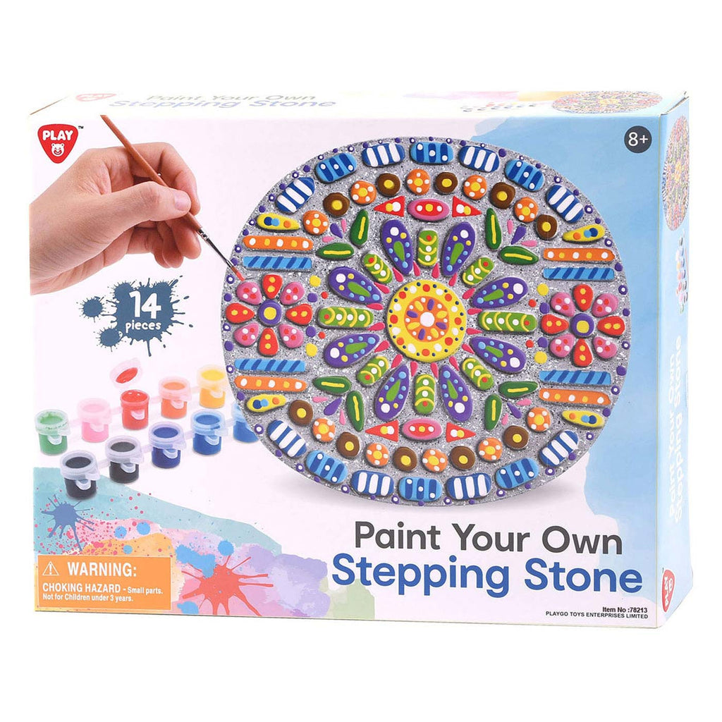 Schilderset van Play voor het versieren van een stepping stone (stapsteen) voor in de tuin. Bevat 1 stepping stone, set met 12 potjes verf en een penseel.
