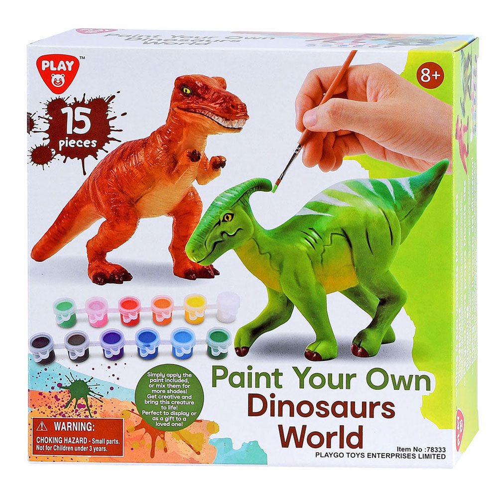 Verf je eigen dino's (T-Rex en Parasaurolophus) met deze stoere set. In de set zitten 2 blanco dino's, 1 penseel en 12 verschillende kleuren verf. Geschikt voor kinderen vanaf 8 jaar.