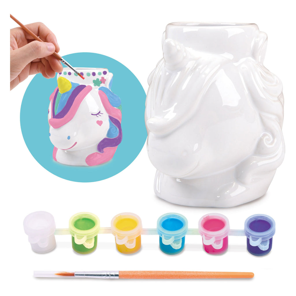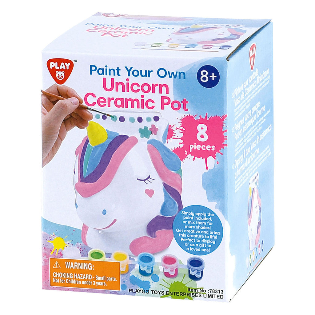 Verf je eigen keramische eenhoorn met deze schilderset van Play! Met 1 potje van keramiek, 6 verfpotjes en 1 penseel. Vanaf 8 jaar.