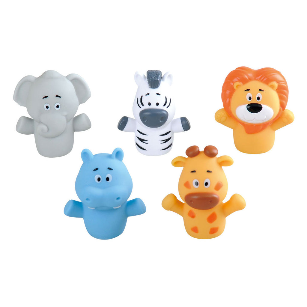 Set vingerpoppetjes van safaridieren, gemaakt van zacht kunststof. Ook geschikt voor in bad. Geschikt voor kinderen vanaf 3 jaar oud.