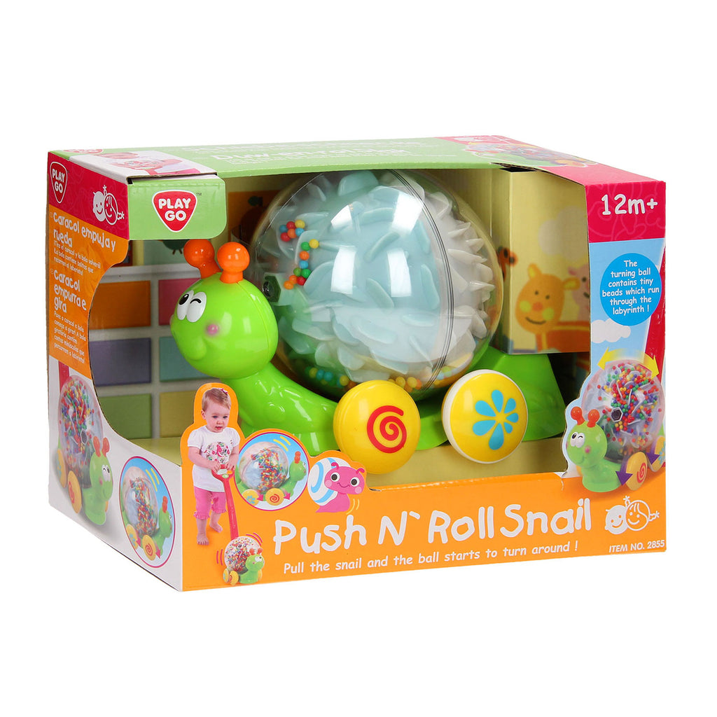 Ga op een vrolijk avontuur met dit duwfiguur in de vorm van een slak. Duw de slak op de 4 gele wielen vooruit en zie hoe de bal op zijn rug begint om zijn as te draaien. De vrolijk gekleurde balletjes binnenin ratelen door het labyrinth. De slak is gemaakt van stevig kunststof.