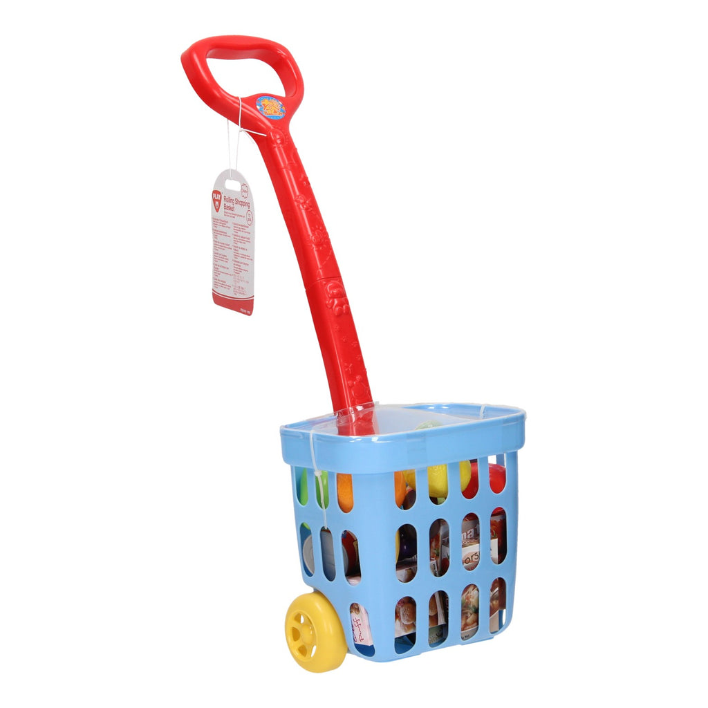 Verzamel de weekboodschappen met dit handige winkelmandje van Play. Rijd het mandje op de wielen achter je aan en vul het met je favoriete fruit, koffie en andere lekkernijen. Het winkelmandje is gemaakt van stevig kunststof en heeft een handig handvat. Inclusief 17 verschillende boodschappen.