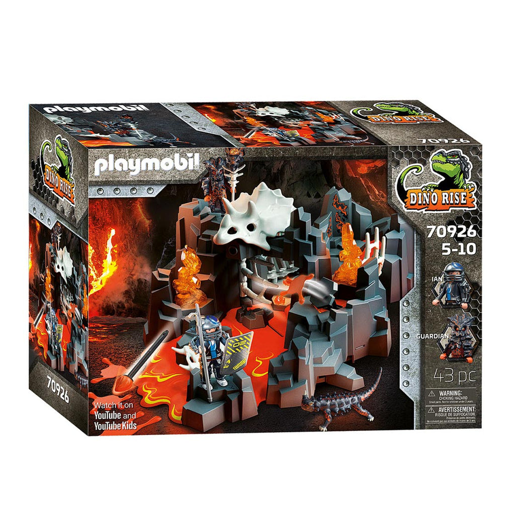 Voor Ian gaat de reis op een spannende manier verder. Hij staat tegenover de mystieke bewaker van energie en moet moeilijke taken oplossen in zijn lavabron. Naast het gevaar van vurige lava, moet Ian eerst de talrijke vallen vermijden. Als de dinosaurusschedel naar achteren wordt gekanteld, wordt een vlammend projectiel afgeschoten. Maar Ian vreest geen gevaar en is vastbesloten om elke uitdaging aan te gaan. Zal hij in staat zijn om alle valstrikken te overwinnen en erachter te komen wat de energiebewaker van plan is? De set bevat Team Dino Rise-lid Ian en een bewaker, een duivel, een lavabron met mechanische vallen, een beschermend schild, uitrusting voor Ian en vele andere accessoires voor gevaarlijke avonturen.