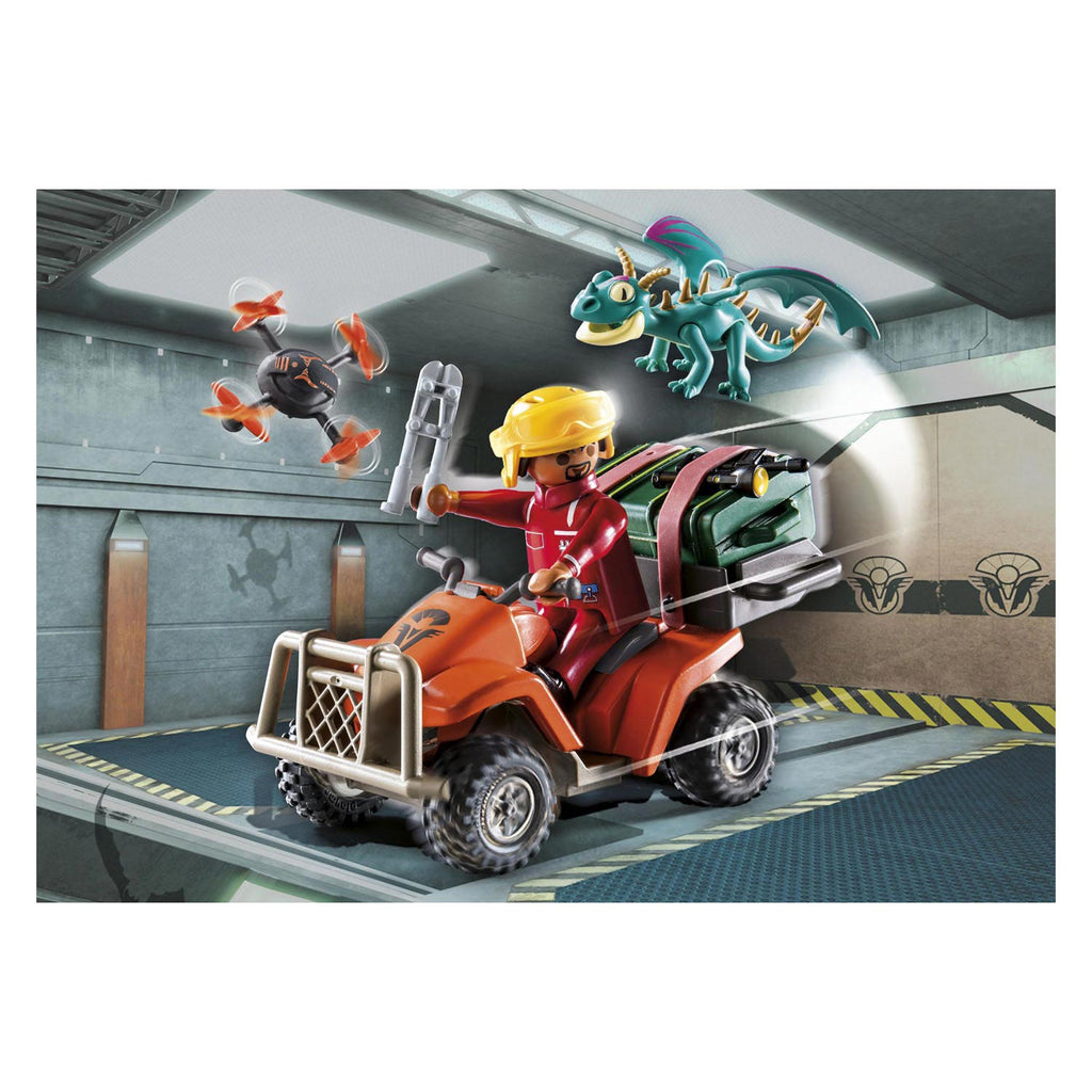 1300 jaar na de gebeurtenissen van 'Hoe tem je een draak' zijn draken slechts een legende in de moderne wereld. Wanneer een geologische afwijking een enorme kloof in het aardoppervlak opent, verzamelen wetenschappers van over de hele wereld zich bij een nieuw onderzoeksfaciliteit om het mysterieuze fenomeen te onderzoeken. Al snel ontdekt een groep buitenbeentjes, die door hun ouders naar de faciliteit zijn gebracht, de waarheid over draken en hun hol - een geheim dat ze moeten bewaren om te beschermen wat ze hebben ontdekt. Phil Baker is de vader van D'Angelo en hoofd van de beveiliging van het ICARIS-lab. Met de Dragons: The Nine Realms - Icaris Quad & Phil speelset van PLAYMOBIL kunnen nu nieuwe drakenverhalen worden nagespeeld. Phil wordt geleverd met een Terrible Dread kite, plus een quad en accessoires. De Terrible Horror van PLAYMOBIL heeft een onderkaak die open kan, verstelbare poten en beide vleugels kunnen worden gedraaid. De complete set bevat Dragons: The Nine Realms Philip Baker-figuur en Horrible Horror, ATV met terugtrekmotor, drone, gereedschapsset en meer extra's voor coole drakenavonturen.