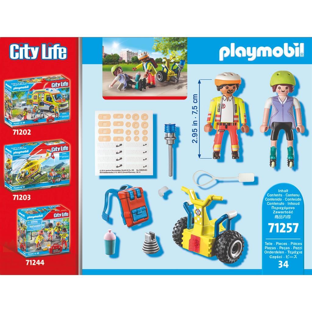 De paramedicus schiet de skater te hulp.