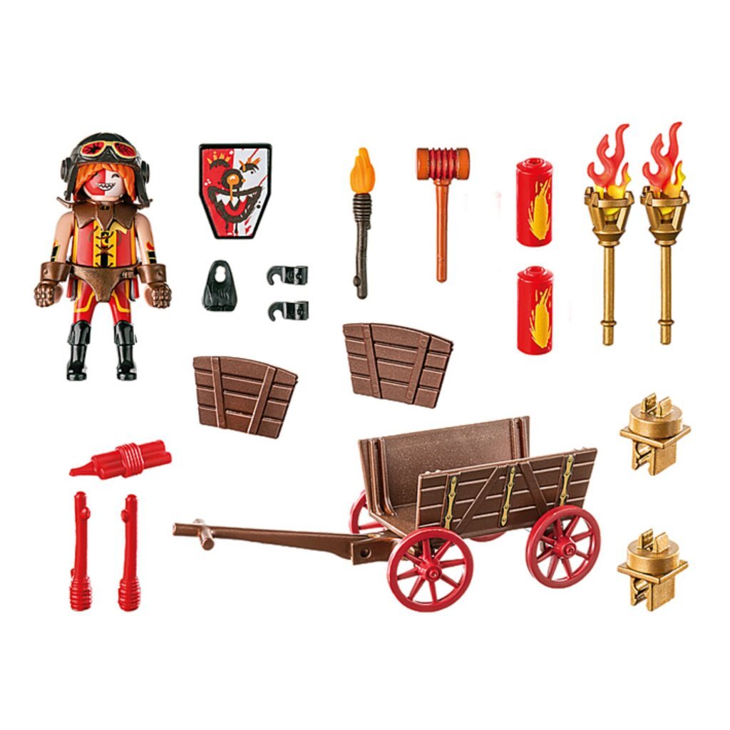 Kahboom van de Burnham Raiders jaagt de Novelmorianen achterna in zijn waanzinnige racekar, uitgerust met dynamiet en lichtkogels. Het Novelmore-ridderwereldspel zit boordevol avonturen: Kahboom, de vuurgedreven hofnar van de Burnham Raiders, duikt in de actie met zijn racekar. Uitgerust met dynamiet en fakkels is Kahboom onvoorspelbaar. Maar de Ridders van Novelmore weten ook hoe ze zich moeten verdedigen. Met geweldige helden, sluwe schurken, mysterieuze wezens en slimme wapens biedt Novelmore enorm veel plezier voor creatieve kinderen vanaf 4 jaar. De speelset bevat een figuur, dynamietstok, hamer, fakkel, vliegenierspet, handschoenen en nog veel meer spannende extra's.
