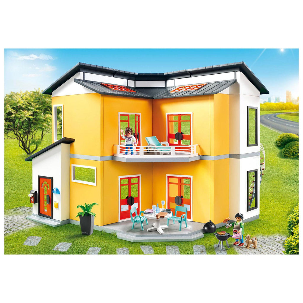 Playmobil 9266. Kom binnen in het nieuwe moderne woonhuis van Playmobil. Hier komen woondromen uit! Het grote huis biedt plaats voor het inrichten van vijf kamers en beschikt over een trap en een balkon. Op het terras kunnen in de zomer geweldige barbecues worden georganiseerd. Helemaal geweldig: het huis heeft een deurbel en werkende buitenverlichting. Werkt op 2 AAA batterijen (niet inbegrepen).